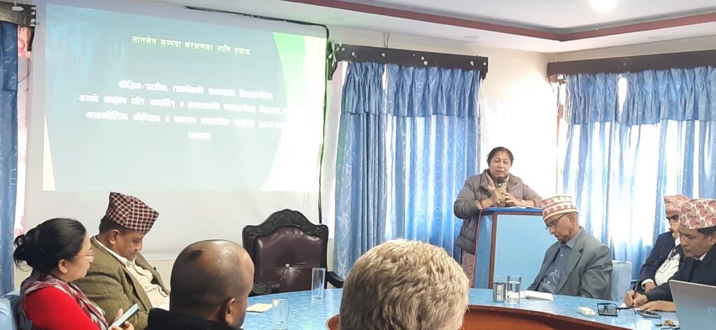 गत जेठमा यस तानसेन गूठीको समन्वयमा KEC द्वारा तानसेन नगर पालिकाभित्र तानसेनमा बजारका केही भागको अध्ययन पुरा गरेको थियो। ति पुराना घर, गल्ली, बाटो, मठ, मन्दिर जस्ता धेरै सम्पदाको (भौतिक,अभौतिक)संरक्षण सम्बर्द्धन व्यवस्थापन र उपयोगवाट तानसेनको मध्ययुगीन शहरको पहिचानमा गहकिलो मद्दत गर्न सकिन्छ भन्ने प्रतिवेदनको सार सहित कार्यान्वयन र पर्यटन प्रवर्द्वनका लागी सम्पदा संरक्षण गुरुयोजना निर्माणमा सहजीकरण गर्ने सुझाव सहित तानसेन नगर पालिकालाई भिजुएल प्रस्तुति गरि र हस्तान्तरण गर्ने कार्य मिति २०८१ फागुन १० शनिबार तानसेन नगरपालिकामा नगरप्रमुख श्री सन्तोषलाल श्रेष्ठको अध्यक्षतामा तानसेनका प्रतिनिधि सभाका सभासद लगायत तानसेनका बिभिन्नसंघ संस्थाका प्रतिनिधिज्यूहरु,विज्ञ, गन्यमान्यज्यूहरुको उपस्थितिमा सुसम्पन्न भयो।